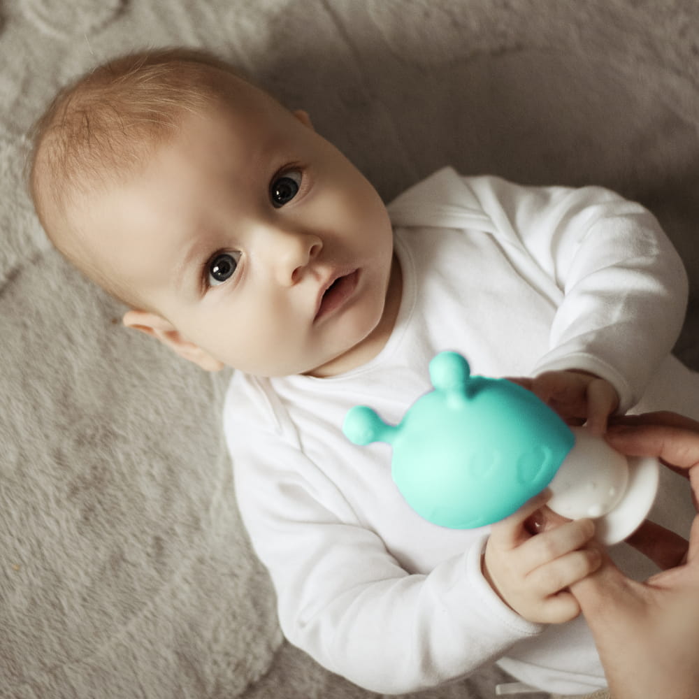Gryzak wykonano z miękkiego, elastycznego silikonu o najwyższej jakości, w pełni bezpiecznego dla dzieci. Jest wolny od BPA i innych szkodliwych substancji, co sprawia, że możesz spokojnie podać go swojemu maluszkowi.