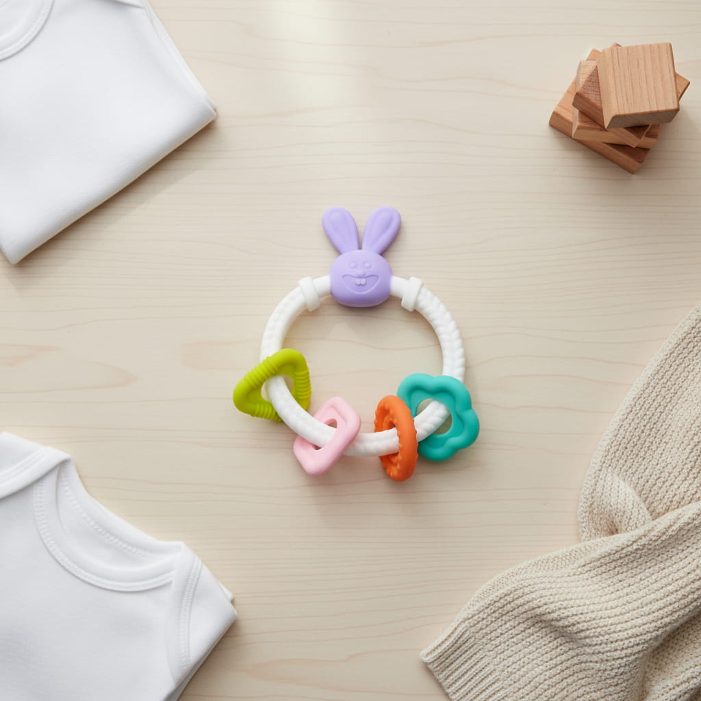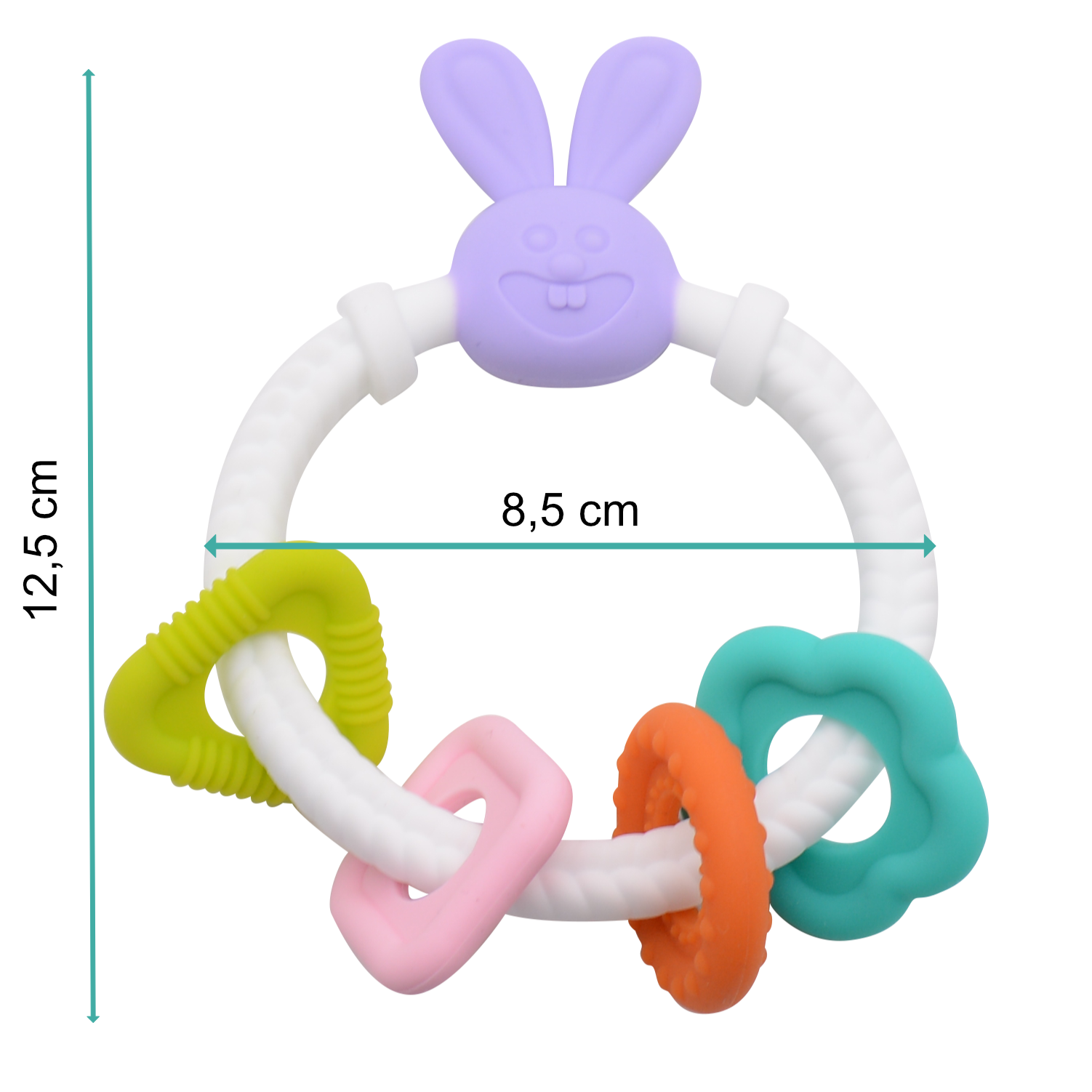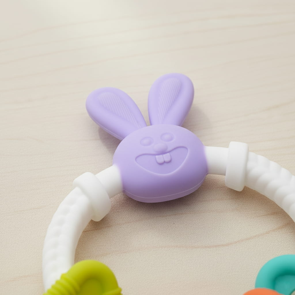 Silikonowy Gryzak Sensoryczny dla Niemowląt – Króliczek z Zawieszkami