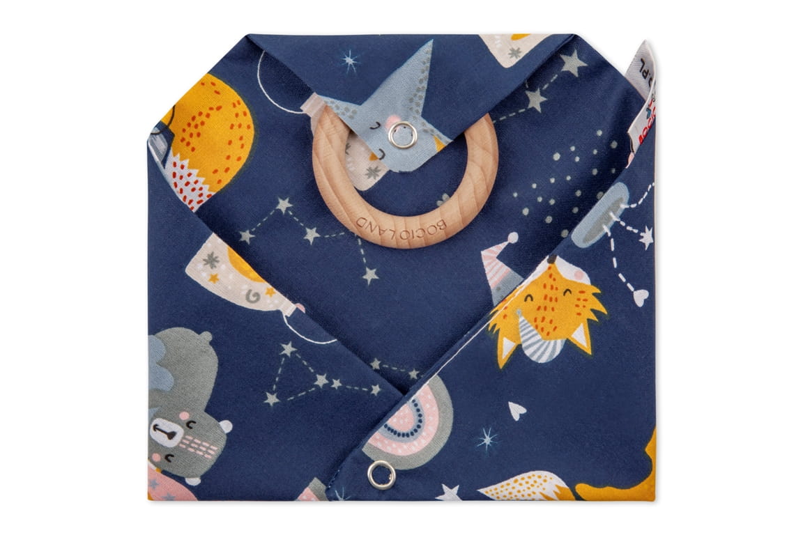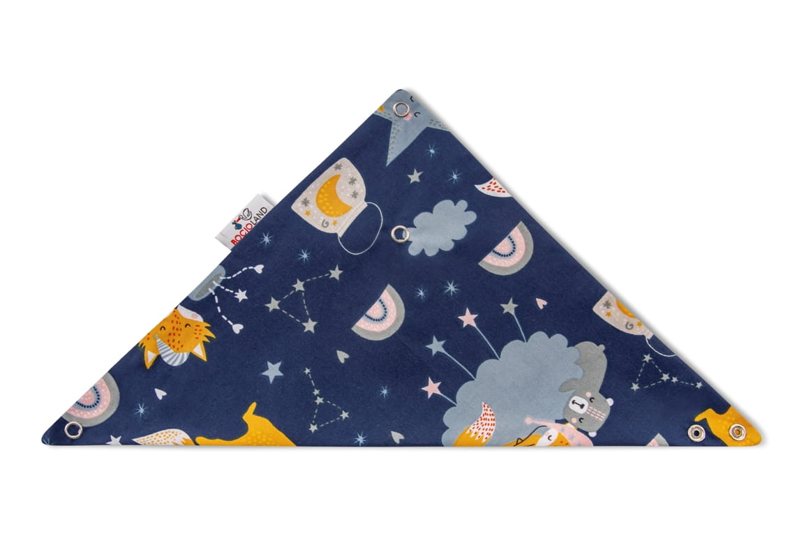 Poprzez swój kształt i sposób wykonania pełni dwie funkcje. Jest zarówno śliniakiem osłaniają ubranie dziecka podczas karmienia, a także są apaszką/bandaną dla dziecka osłaniając szyję, stanowiąc element ubioru dziecka. Produkt jest wykonany z dwóch warstw materiału 100% bawełny.