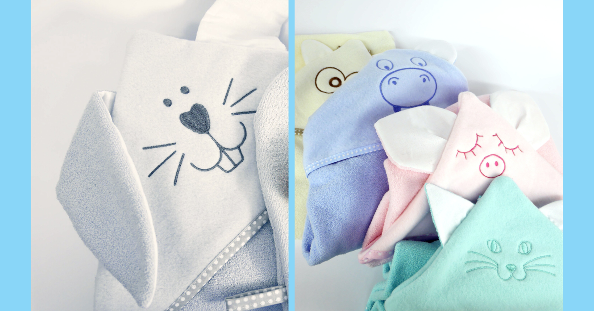 - posiada uroczy haft i uszy na kapturku (sowa, świnka, kot, hipopotam, zając)