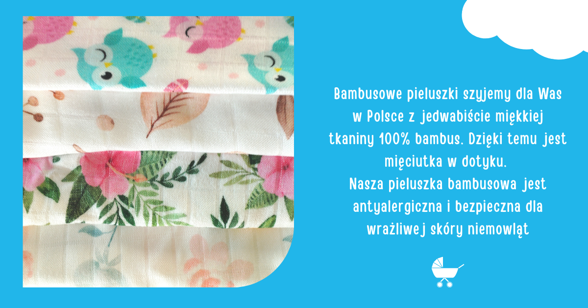 To artykuły dziecięce ze zdrowotnej tkaniny bambusowej 100%. Dzięki naturalnym właściwością antyalergicznym i antybakteryjnym tkanina nie powoduje uczuleń. Jest to ważne dla delikatnej skóry dziecka szczególnie wrażliwej na podrażnienia. Kolorystyka pieluszek jest subtelna i stonowana a tkaniny są miękkie oraz aksamitne w dotyku. Produkt wykonany jest z ogromną starannością, by spełniać najwyższe oczekiwania rodziców i ich pociech.