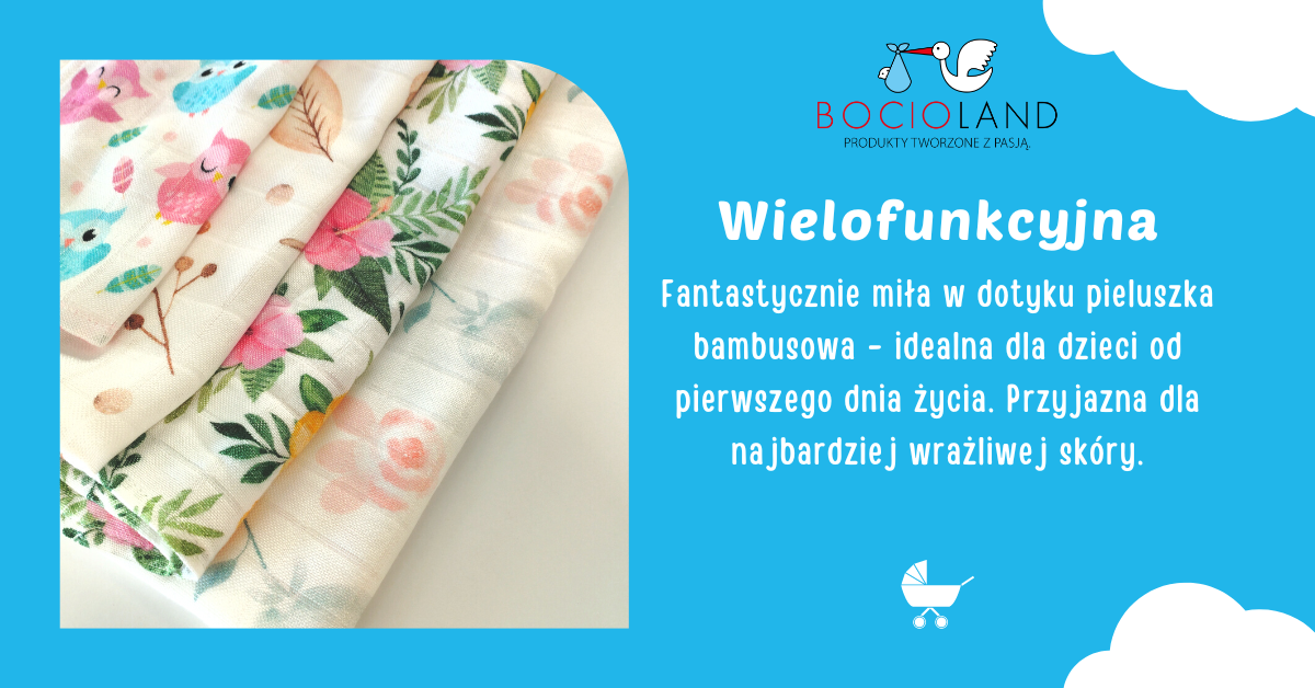 To artykuły dziecięce ze zdrowotnej tkaniny bambusowej 100%. Dzięki naturalnym właściwością antyalergicznym i antybakteryjnym tkanina nie powoduje uczuleń. Jest to ważne dla delikatnej skóry dziecka szczególnie wrażliwej na podrażnienia. Kolorystyka pieluszek jest subtelna i stonowana a tkaniny są miękkie oraz aksamitne w dotyku. Produkt wykonany jest z ogromną starannością, by spełniać najwyższe oczekiwania rodziców i ich pociech.