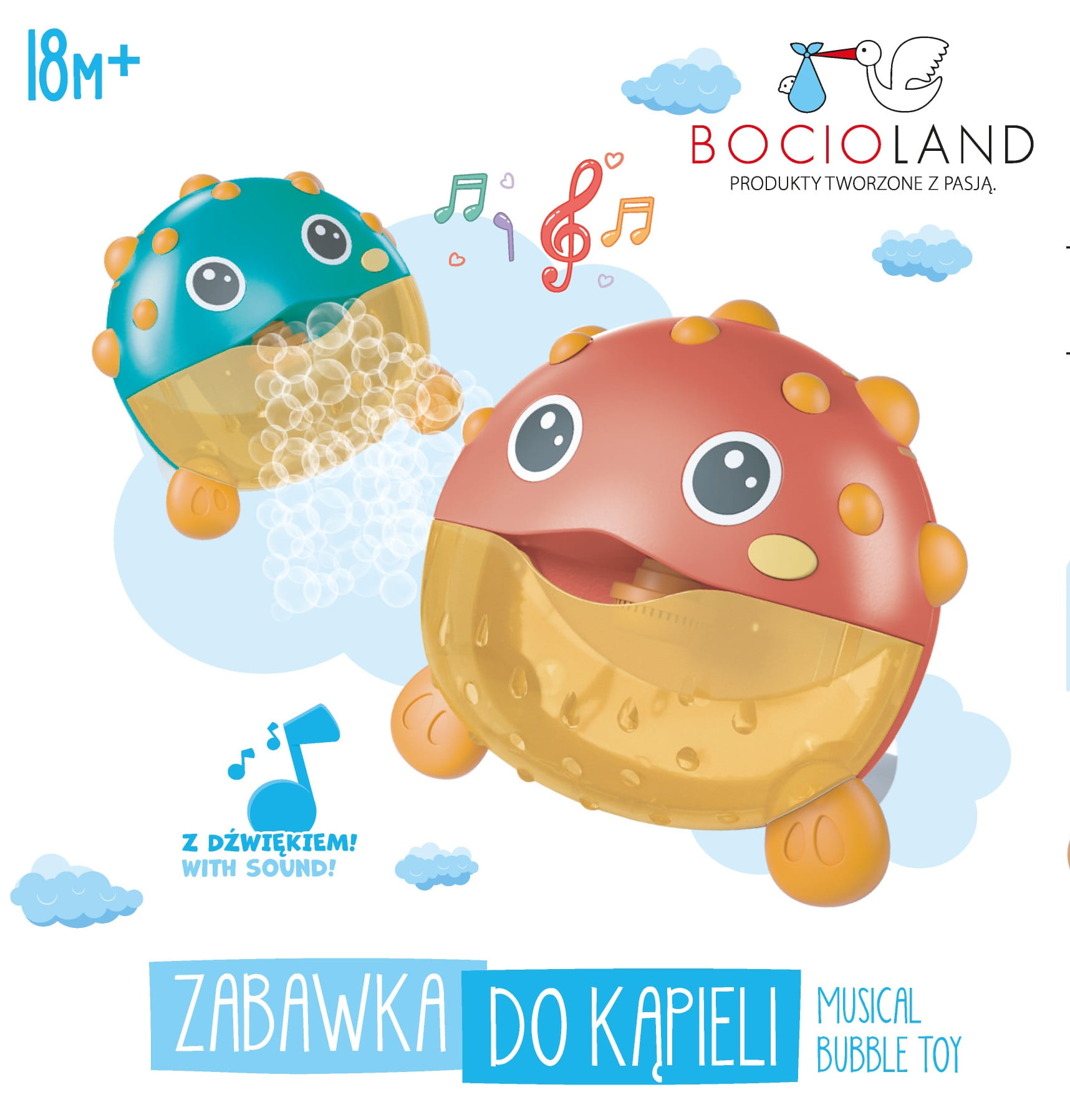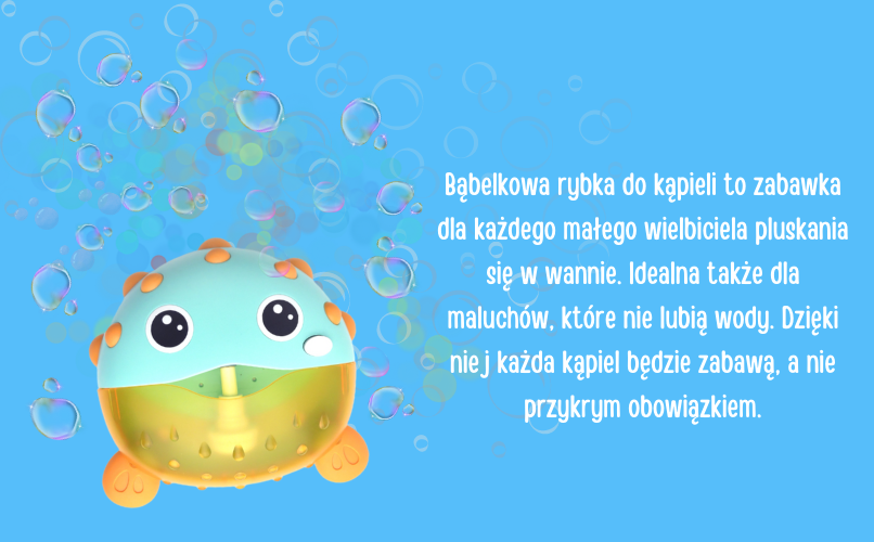 - w trakcie wytwarzania bąbelków rybka gra wesołą melodię