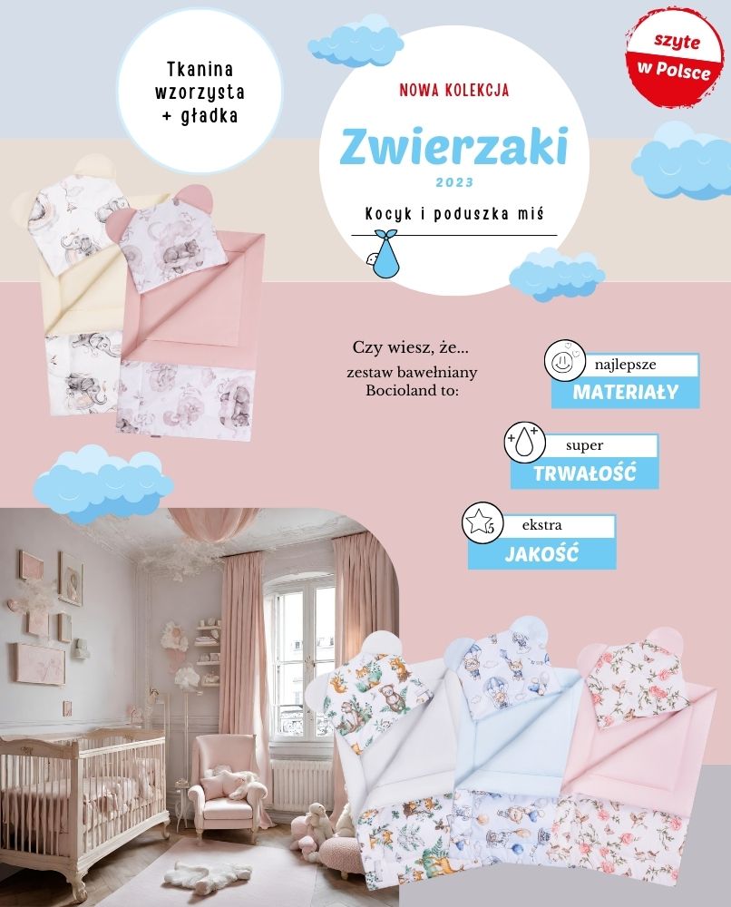 Zestaw charakteryzuje się optymalną wielkością i grubością (ok. 3 cm), zapewniając dziecku przytulne ciepło i niesamowitą wygodę.