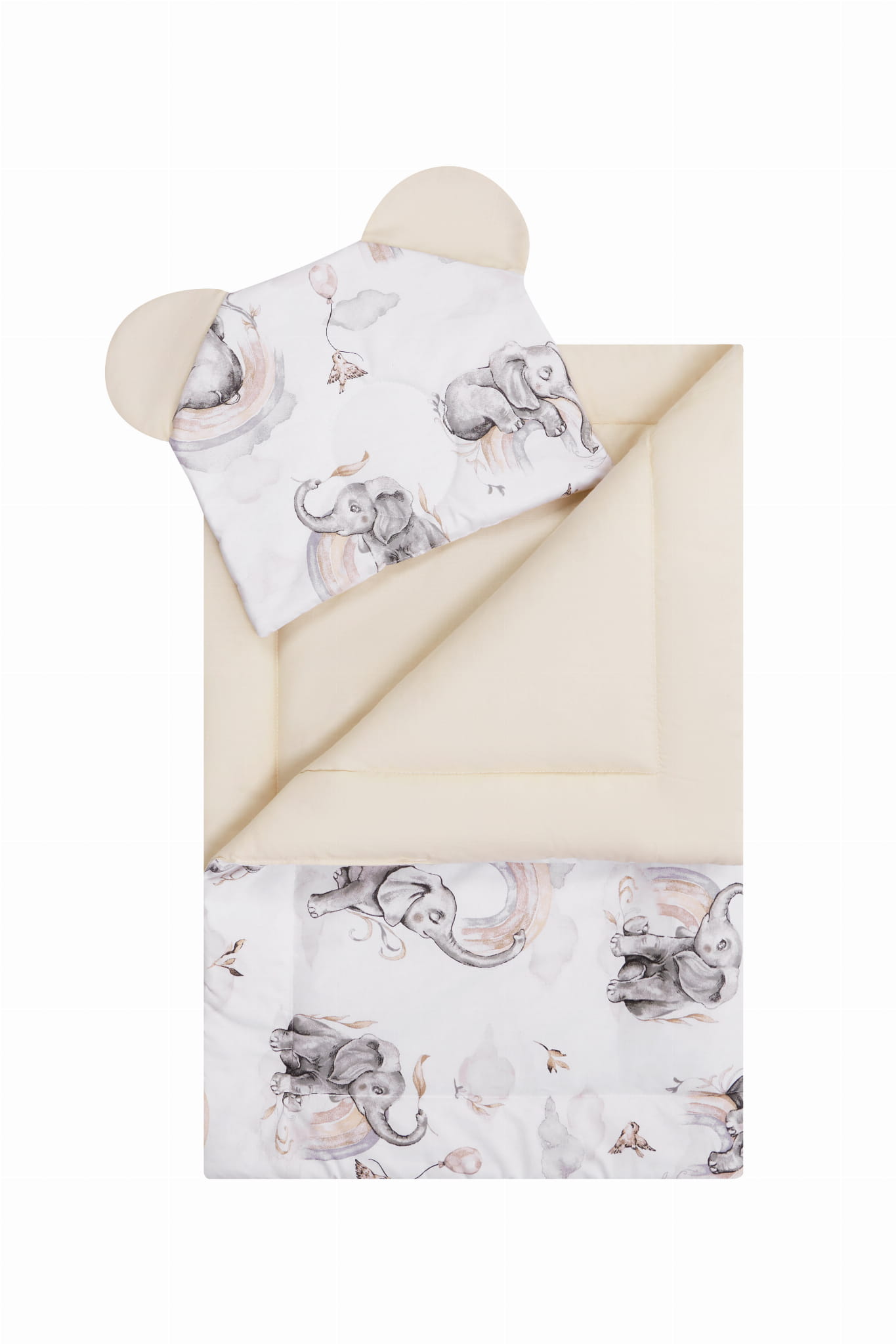 Zestaw charakteryzuje się optymalną wielkością i grubością (ok. 3 cm), zapewniając dziecku przytulne ciepło i niesamowitą wygodę.