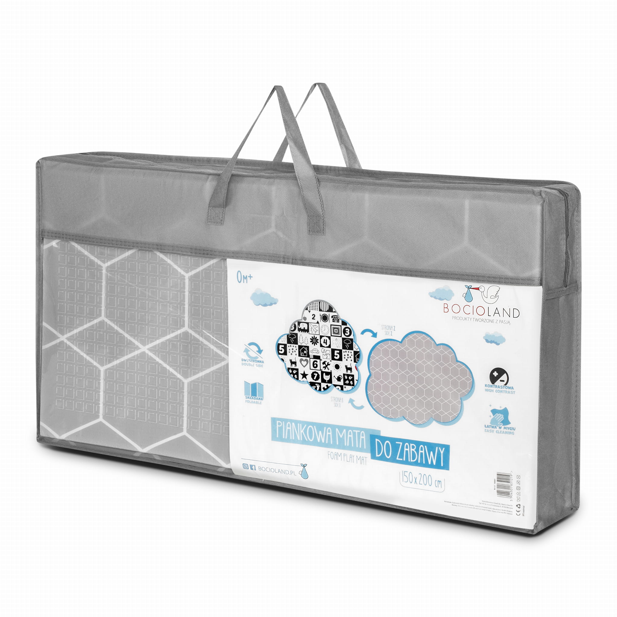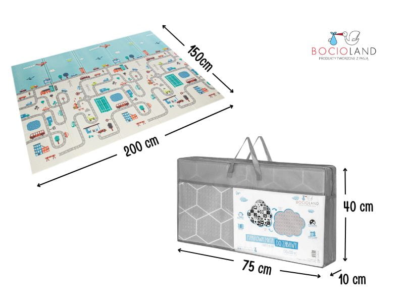 Torba w zestawie – dzięki dołączonej torbie możesz mieć pewność, że podczas transportu mata się nie pobrudzi. Uszy pokrowca maty dla dzieci XXL zapewniają łatwość w transporcie.