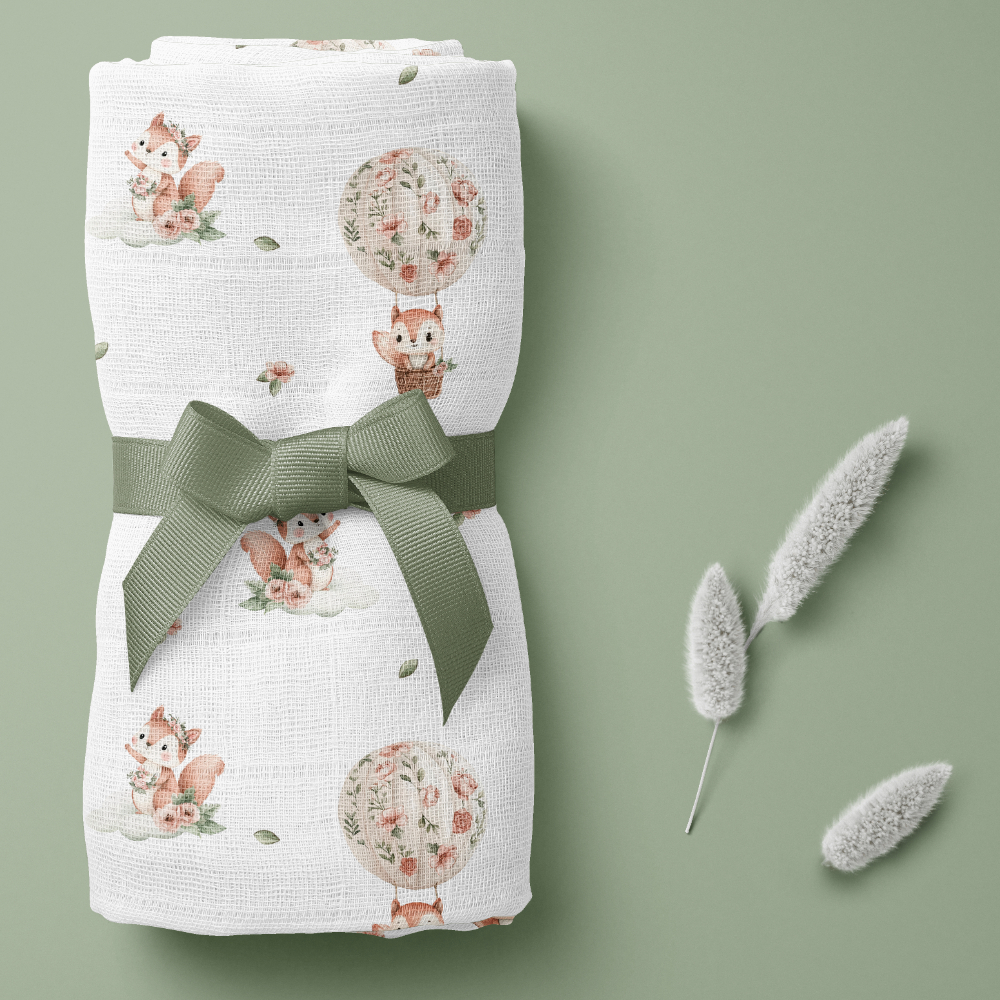 Pieluszka Bambusowa wiewiórki 110x110 cm