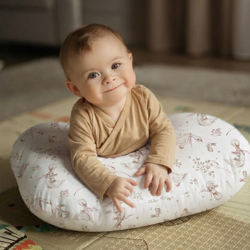 3. Wsparcie przy nauce siadania: Podpora dla niemowlaka: Rogal może być używany jako podpórka, pomagając dziecku w nauce siadania. Stabilizuje maluszka, zapewniając mu bezpieczeństwo podczas nauki nowych umiejętności.