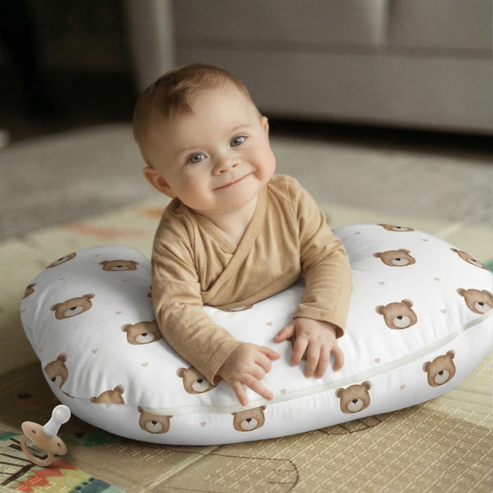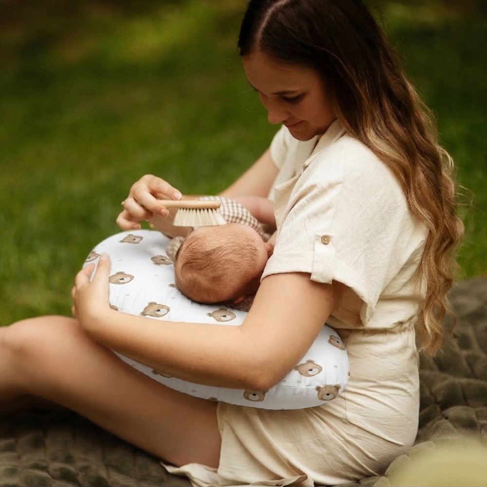 Dzięki specjalnemu ergonomicznemu kształtowi "fasolki" zapewnia stabilne i bezpieczne wsparcie dla dziecka przystawionego do piersi lub karmionego butelką, jednocześnie zmniejszając napięcie mięśni szyi, ramion i rąk u mamy.