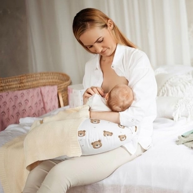 -> Wsparcie podczas karmienia piersią: Poduszka rogal zapewnia stabilne i wygodne podparcie dla dziecka, umożliwiając prawidłowe przystawienie do piersi. To zmniejsza napięcie mięśni ramion, pleców i szyi u mamy, umożliwiając karmienie w komfortowej pozycji.