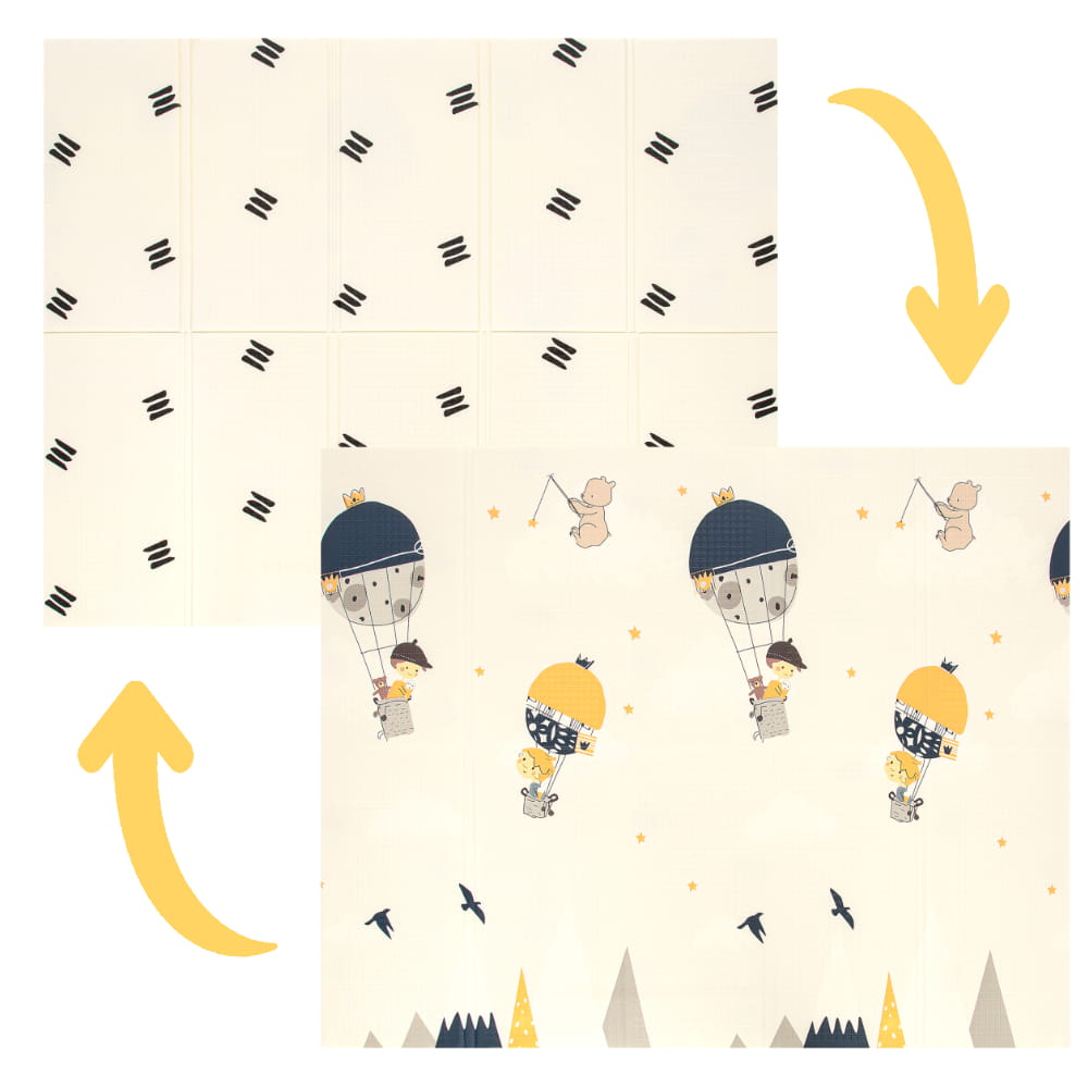 - Dwustronny, atrakcyjny design – różne wzory po obu stronach maty,