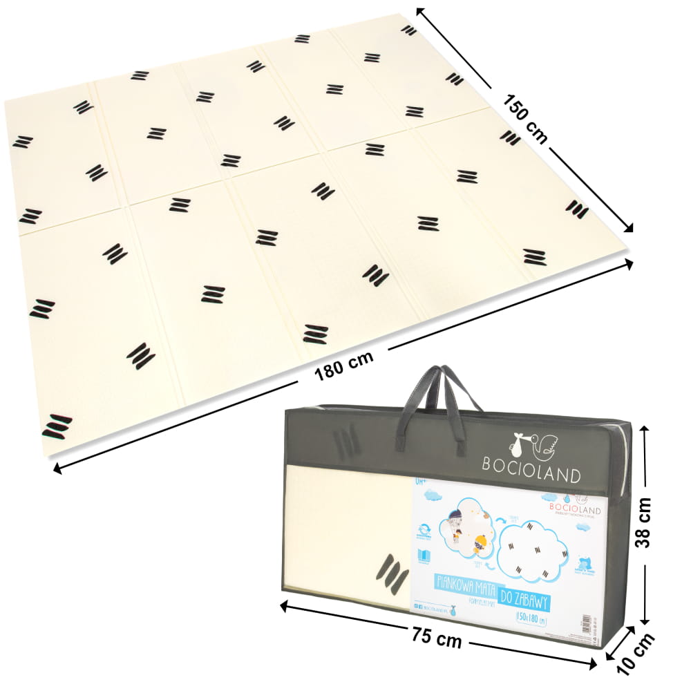 Poznaj wyjątkową, dużą matę piankową Bocioland, zaprojektowaną z myślą o komforcie i rozwoju Twojego dziecka. Dzięki optymalnym wymiarom: 150x180 cm oraz grubości 1 cm, mata zapewnia miękką, bezpieczną i przyjazną przestrzeń do zabawy, raczkowania i nauki pierwszych kroków.