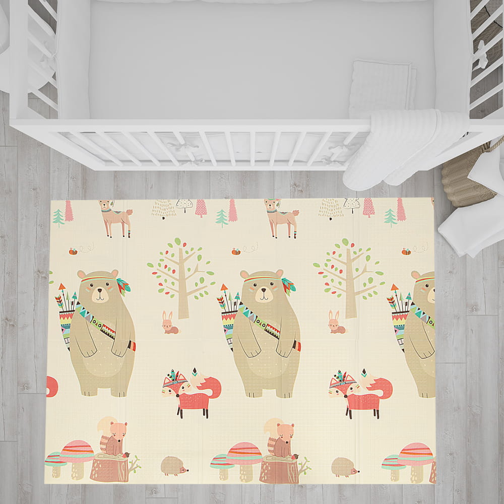 - Dwustronny, atrakcyjny design – różne wzory po obu stronach maty,