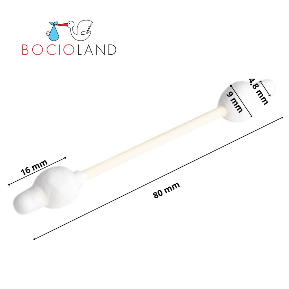 Taniej w zestawie!Bawełniane patyczki higieniczne z ogranicznikiem-do codziennej pielęgnacji okolic oczu, uszu, nosa oraz pępka niemowląt.