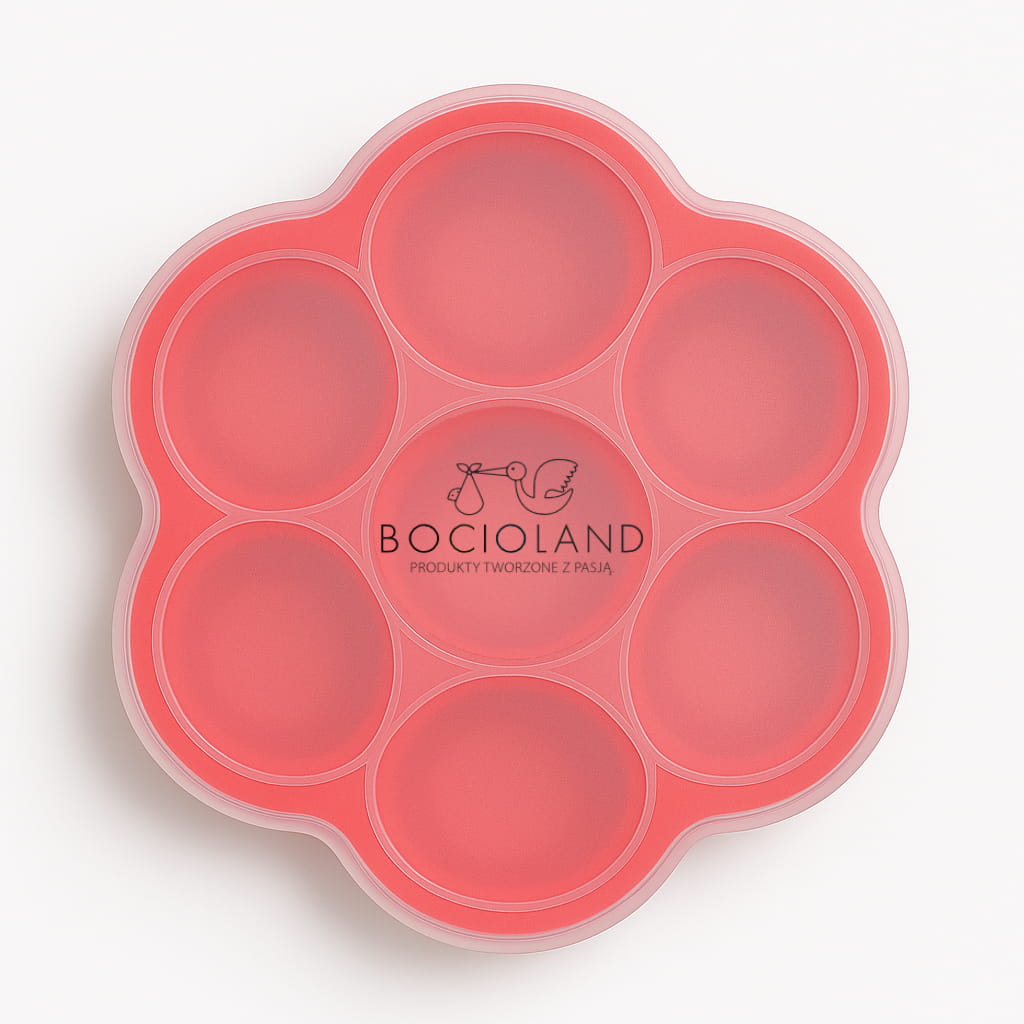 Foremka do mrożenia w kształcie kwiatka wyposażona jest w 7 praktycznych komór, z których każda mieści około 65 ml – idealną porcję dla najmłodszych. To wygodna pojemność na mus owocowy, warzywny czy zmiksowany obiadek (około 65–70 g). Dzięki elastycznemu silikonowi możesz z łatwością wyjąć pojedynczą porcję, bez konieczności rozmrażania całej formy – wystarczy lekko nacisnąć dno. Foremka ułatwia porcjowanie i przechowywanie posiłków dla dzieci, zapewniając porządek i wygodę w codziennym przygotowywaniu jedzenia.
